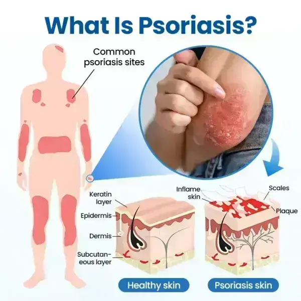 Psoriasis is a persistent autoimmune condition where the immune system incorrectly targets healthy skin tissue, causing accelerated cell production and accumulation. This results in inflammation, scale formation, and characteristic psoriasis patches, which may develop on any body part but frequently appear on the scalp, elbows, knees, and lumbar region.